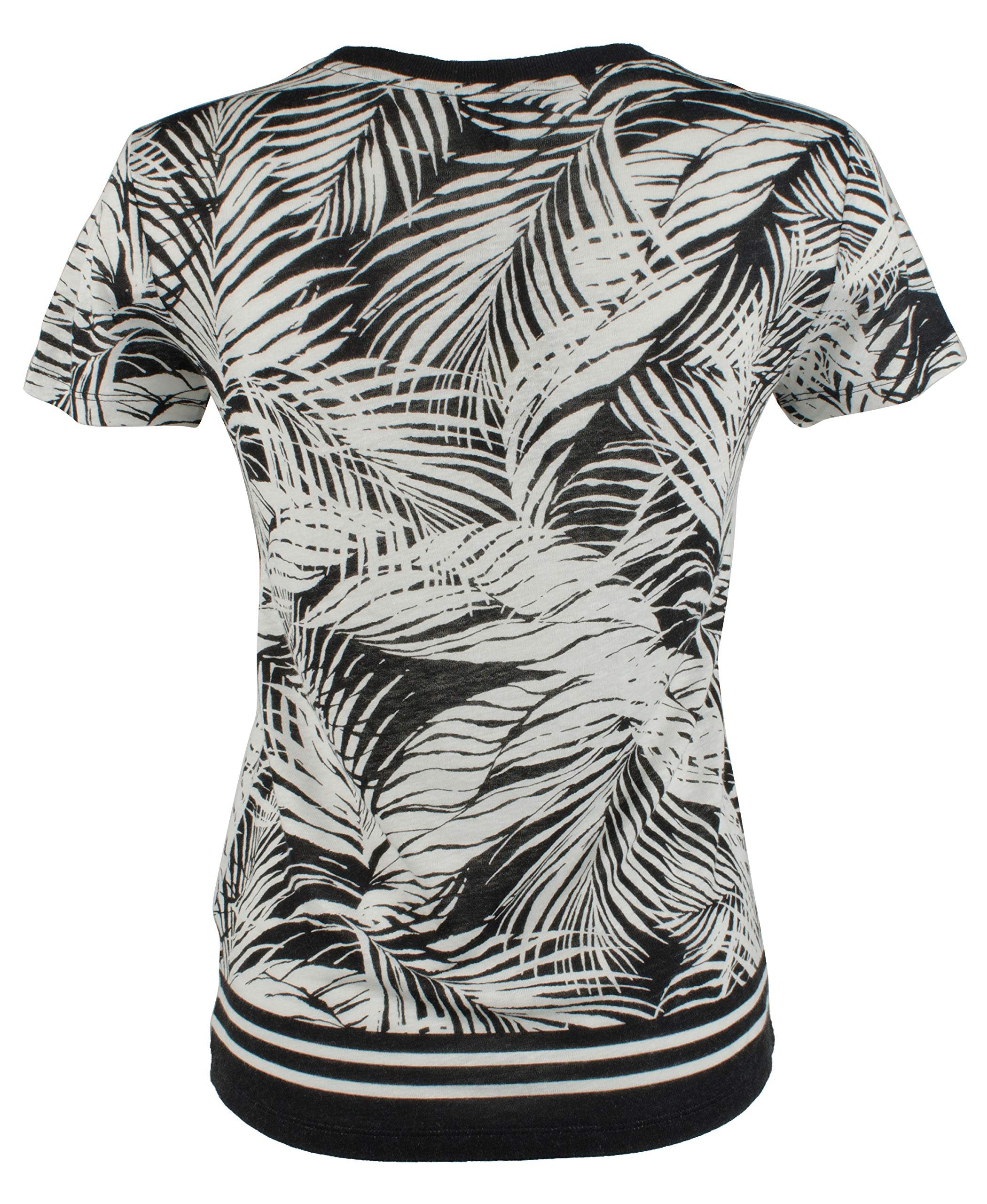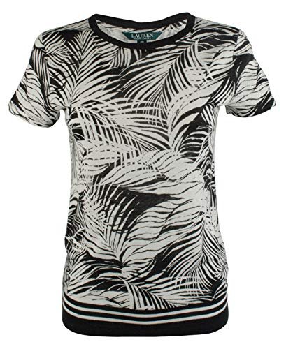 55% linen, 45% viscose. Pullover styling. Contrast on hem and neckline. Straight hemline. Crew neckline. Machine washable; Imported.
