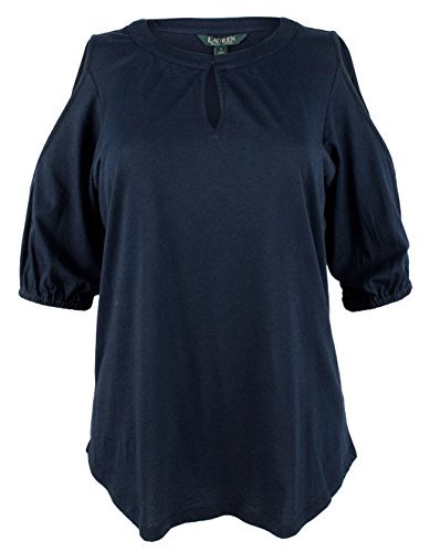 60% Cotton, 40% Modal. Rounded neckline; center front keyhole secures with a hook-and-eye closure. Shoulder cutouts; shirt-tail hem. Elbow-length sleeves with elasticized cuffs. Straight fit.