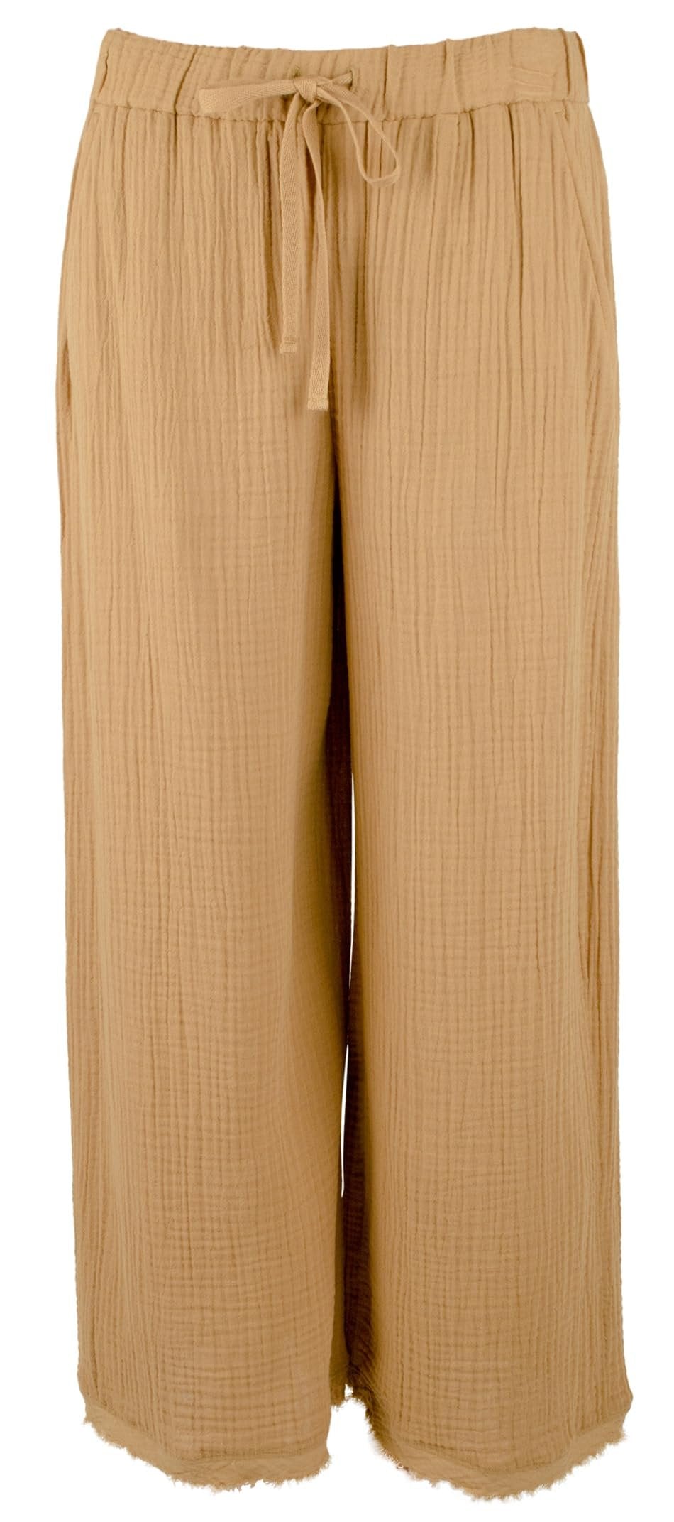 Elasticized waistband. Hip slash pockets. Cropped, wide-leg silhouette. Crinkled finish. Pull-on style. B corp certified. Machine washable. Hand wash cold, hang to dry. Imported100% Organic CottonElasticized waistband.Hip slash pockets. Cropped, wide-leg silhouette.Gauze Crinkled finish, Pull-on styleHand wash cold, hang to dry. Imported