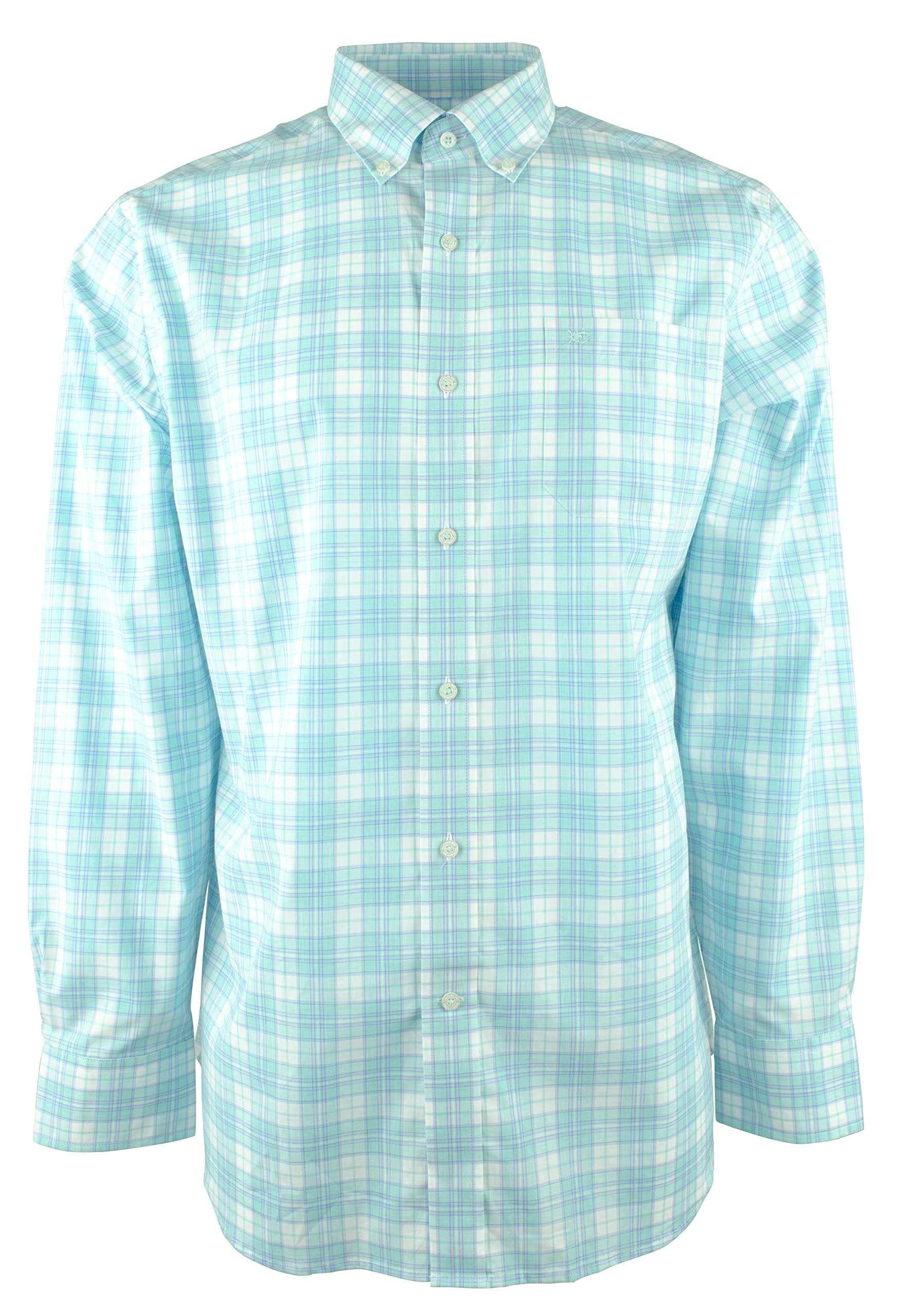98% Cotton, 2% Spandex. Button-down collar. Pocket on left with outline Skipjack embroidery. Long sleeves with adjustable button cuffs, and shirttail hem. Machine wash cold on gentle cycle; Imported