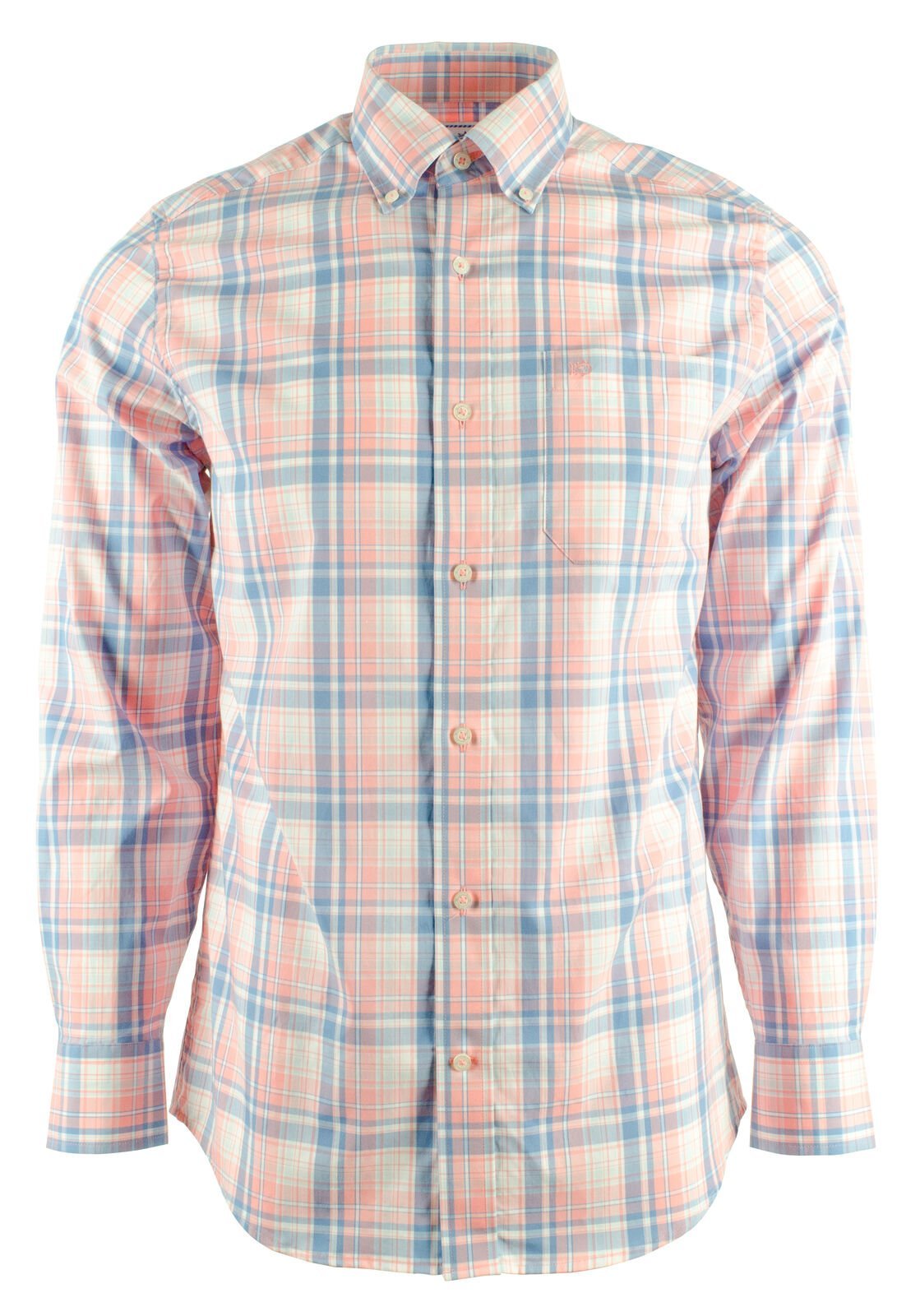 Southern Tide Men's LS Beach Lagoon Plaid Long Sleeve Shirt98% cotton, 2% spandexStretch fabric. Classic fitLaser engraved buttons with coordinating color button thread. Buttoned barrel cuffsPocket on left chest with Skipjack embroideryMachine wash cold; Imported