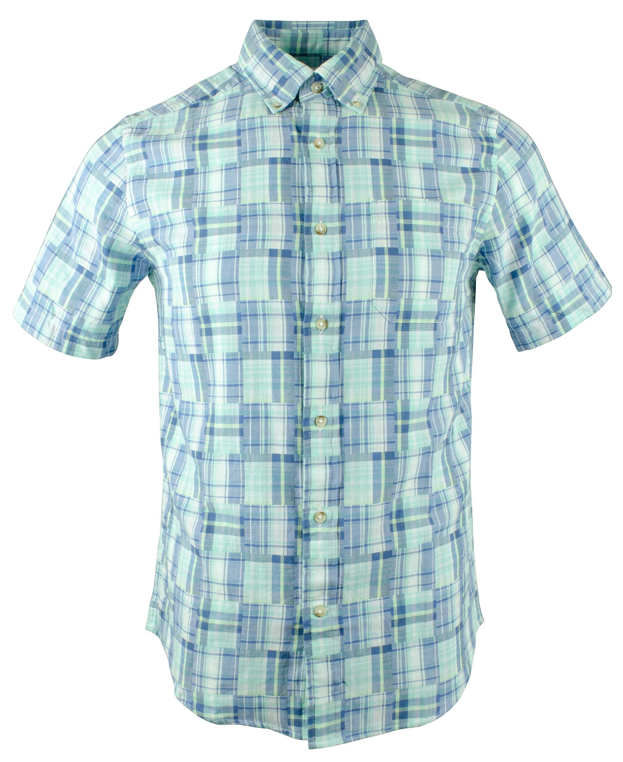 100% Cotton, Men's classic fit, button-down shirt, Button down collar, short sleeves, Left chest pocket, shirttail hem, Machine wash cold, tumble dry low; Imported