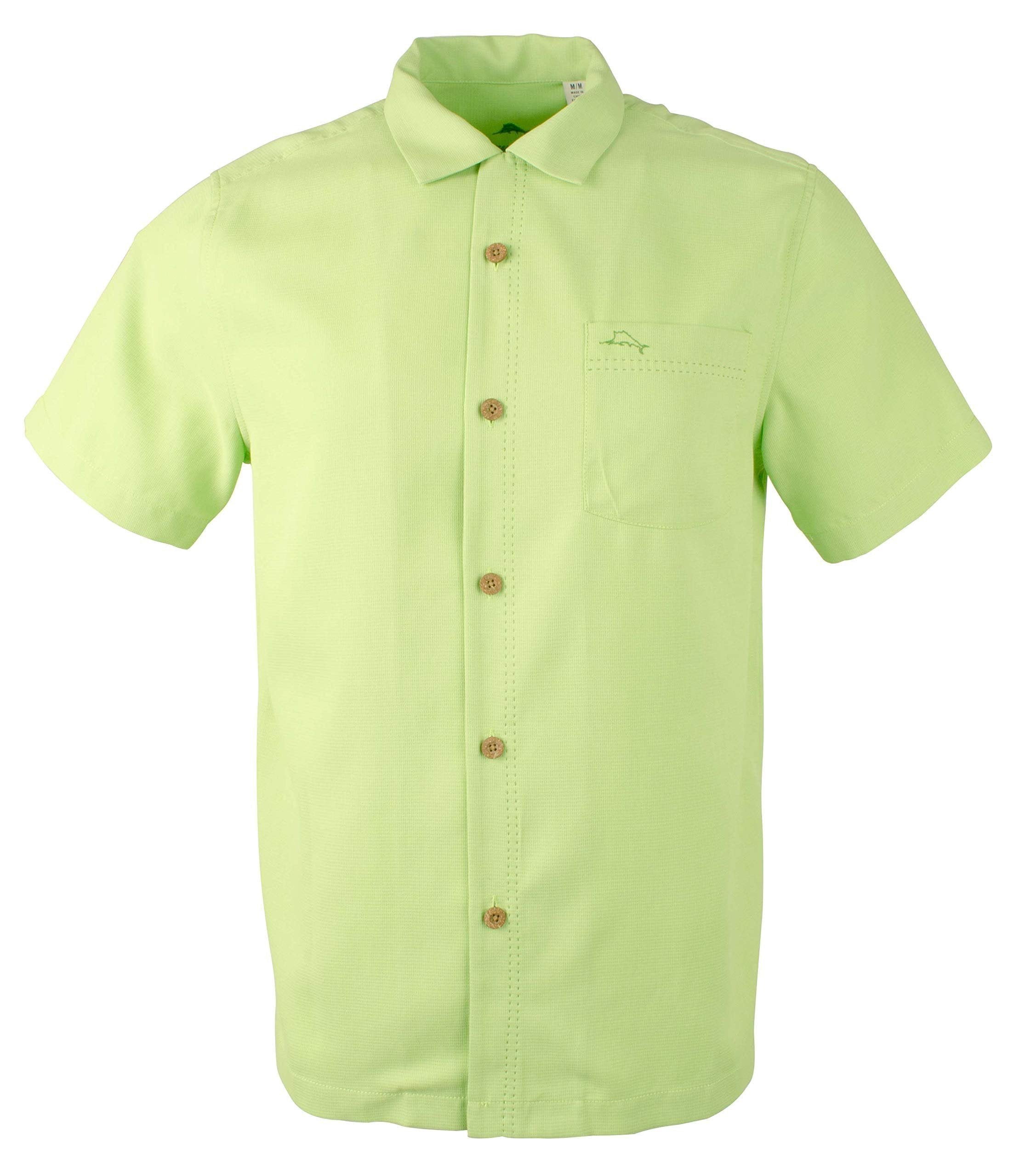 70% Silk, 30% 37.5 Polyester, Men's standard fit, button down, short sleeve camp shirt, Spread collar and button placket, Woven with smooth silk and cooling 37.5 IslandZone technology, Straight hem with side vents, Machine wash cold, or dry clean; Imported70% Silk, 30% PolyesterMen's standard fit, button down, short sleeve camp shirt
