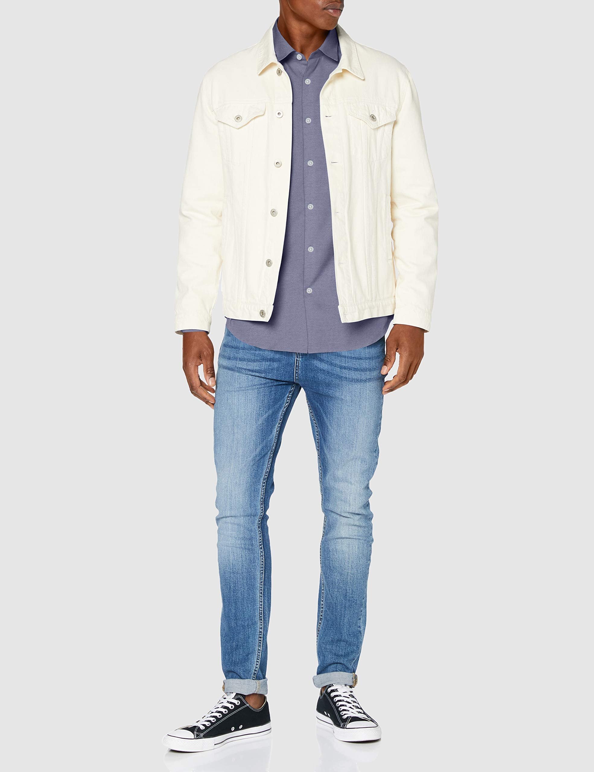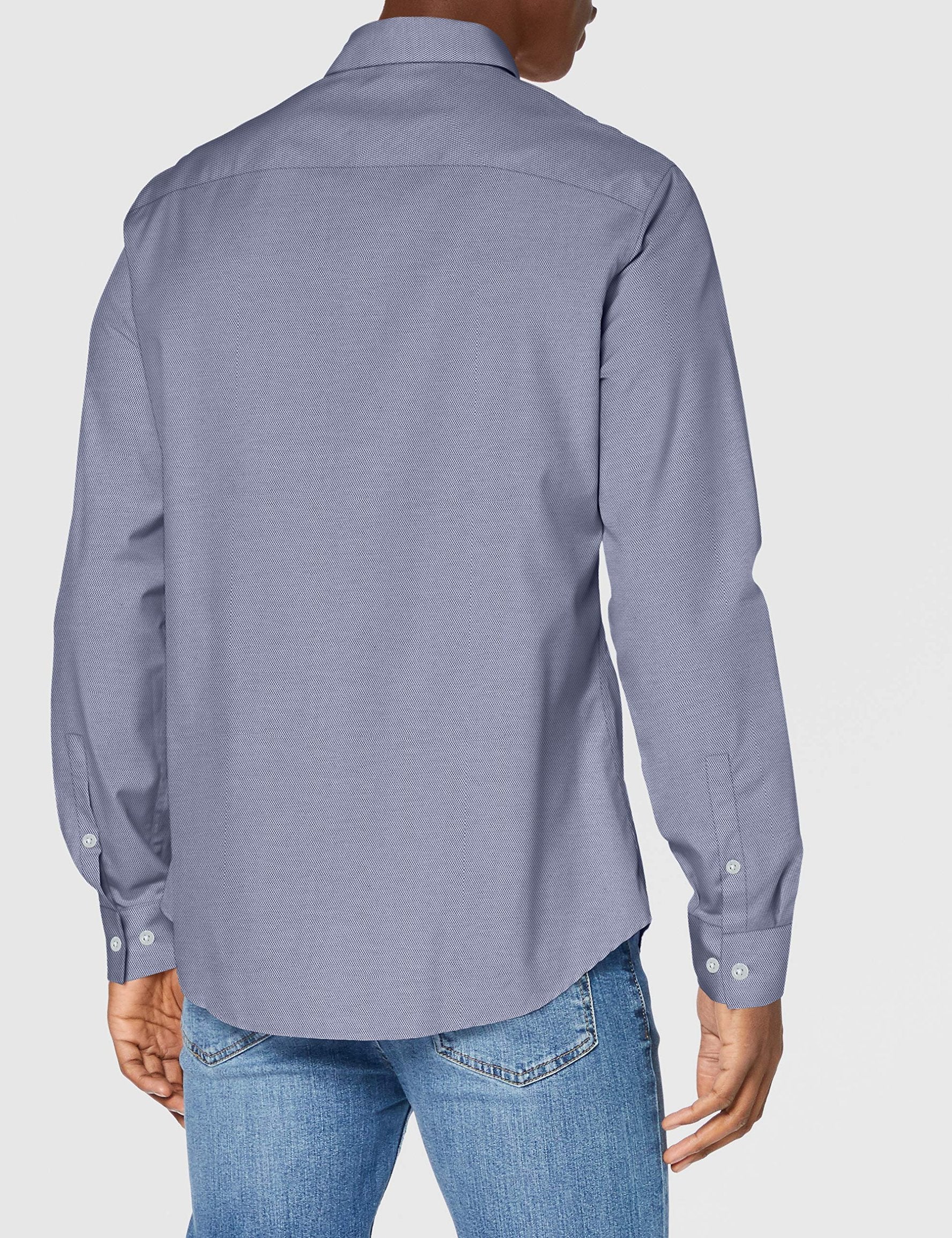 Men's Slim Fit Long Sleeves Shirt-BLU-Small
