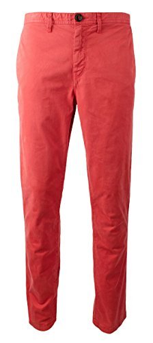 Men's slim fit 97% Cotton; 3% Elastane. Flat front. Zip fly with button closure with red stitching. Belt loops. Front slip pockets with red bar tack stitching. Back buttoned welt pockets.97% Cotton; 3% Elastane. Slim FitFlat front. Zip fly with buttoned closure with red stitchingBelt loops. Front slip pockets with red bar tack stitchingBack buttoned welt pocketsMachine washable; Imported