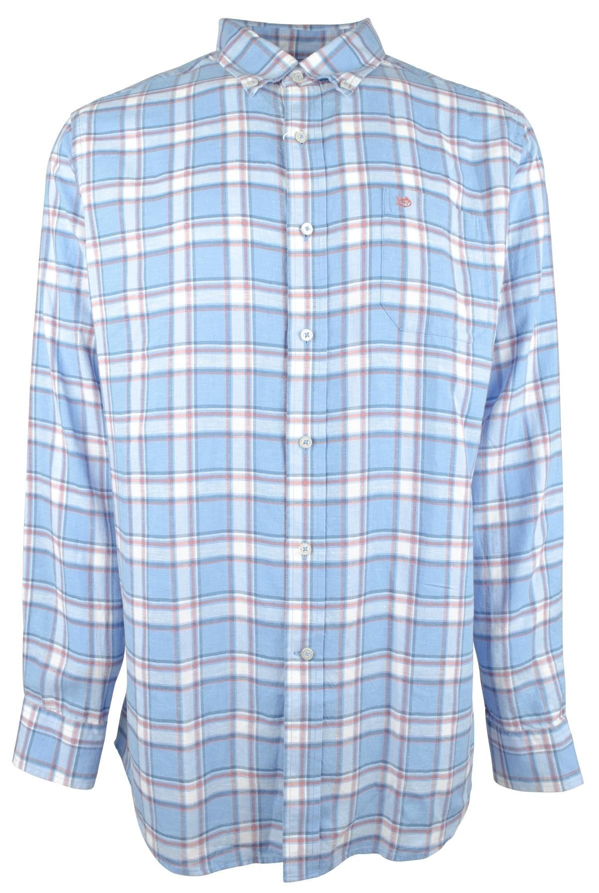 72% Tencel, 28% Hemp, Plaid pattern, Button down collar, Long sleeves with 2-button adjustable cuffs, Button front closure with branded faux horn buttons, Left chest pocket, Outline Skipjack embroidery on pocket hem, Moisture wicking, Stretch fabric, Machine wash/tumble dry, Imported.72% Tencel, 28% HempPlaid pattern, Button down collar, Long sleeves with 2-button adjustable cuffsButton front closure with branded faux horn buttonsLeft chest pocket, Outline Skipjack embroidery on pocket hemMachine wash, Imported..