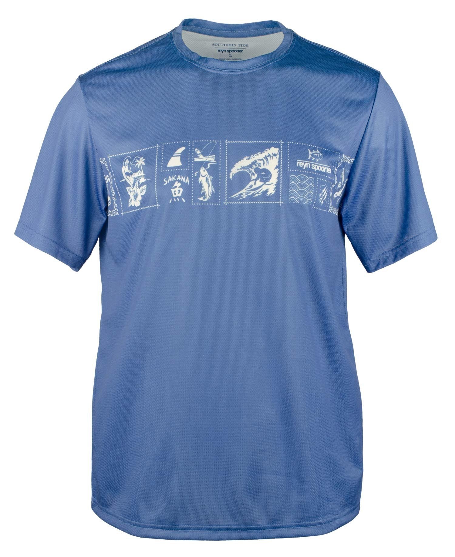 100% Recycled Polyester. Men's crewneck, short sleeve. Graphic located on chest and back. Fabric is moisture management, and made with UPF 30 protection. Machine wash cold, tumble dry low.100% Recycled PolyesterMen's crewneck, short sleeveGraphic located on chest and backFabric is moisture management, and made with UPF 30 protectionMachine wash cold, tumble dry low.