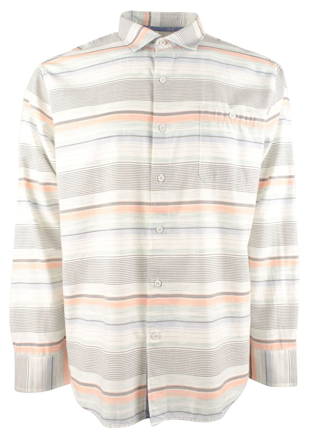 60% Cotton, 40% Tencel.Striped.Spread collar.Longsleeves.Buttoned pocket at left chest.Engraved buttoned closure.Round cuffs. Center box pleat.Shirttail hem.Side seam gusset. Machine wash cold;Imported.60% Cotton, 40% Tencel.Striped.Spread collar.Longsleeves.