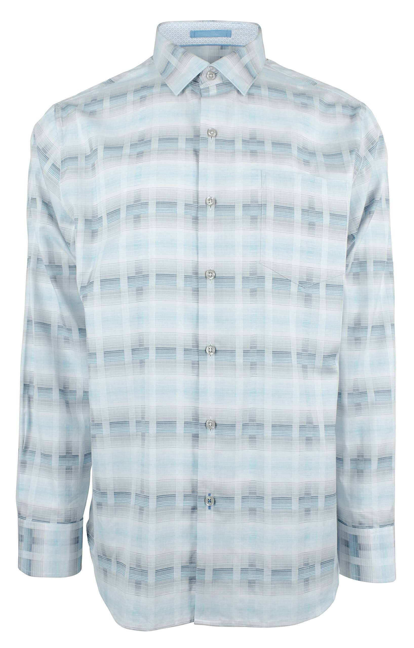 83% Cotton, 17% Silk, Men's standard fit, button down, Spread collar with hidden button-down collar, Long sleeves with, adjustable button cuffs, and left chest pocket, Shirttail hem, Machine wash cold, on gentle cycle, tumble dry low; Imported